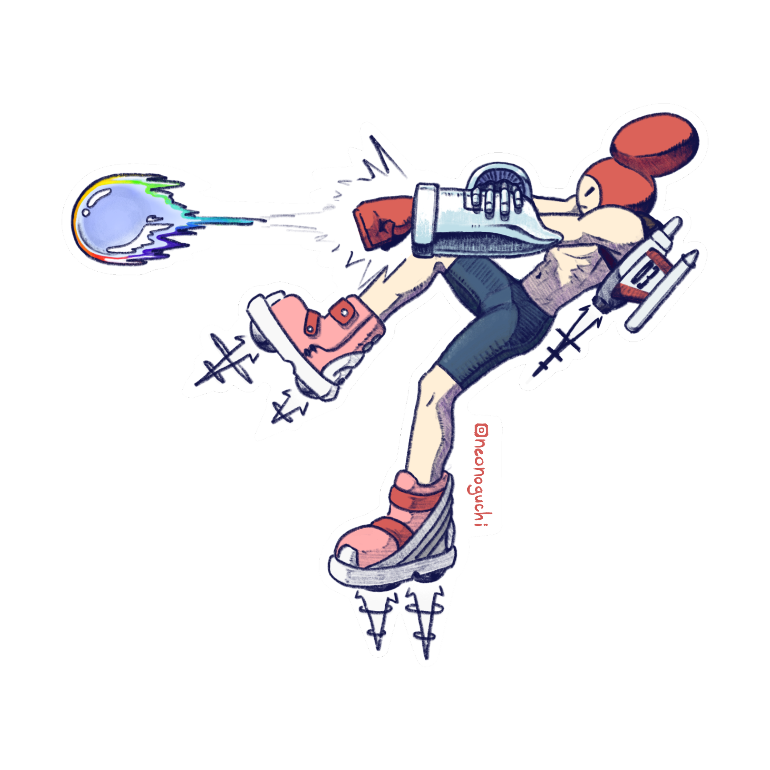 Redd was a character that helped me as an artist when I first dove into the world of COLOR. I was primarily a graphite artist throughout the early stages of my life I hadn’t really attempted anything in color for a while. I created a character that was inspired by many series I loved, like Adventure Time and Kirby, where imagination runs wild and possibilities are endless. I wanted a character that would embody that limitlessness.