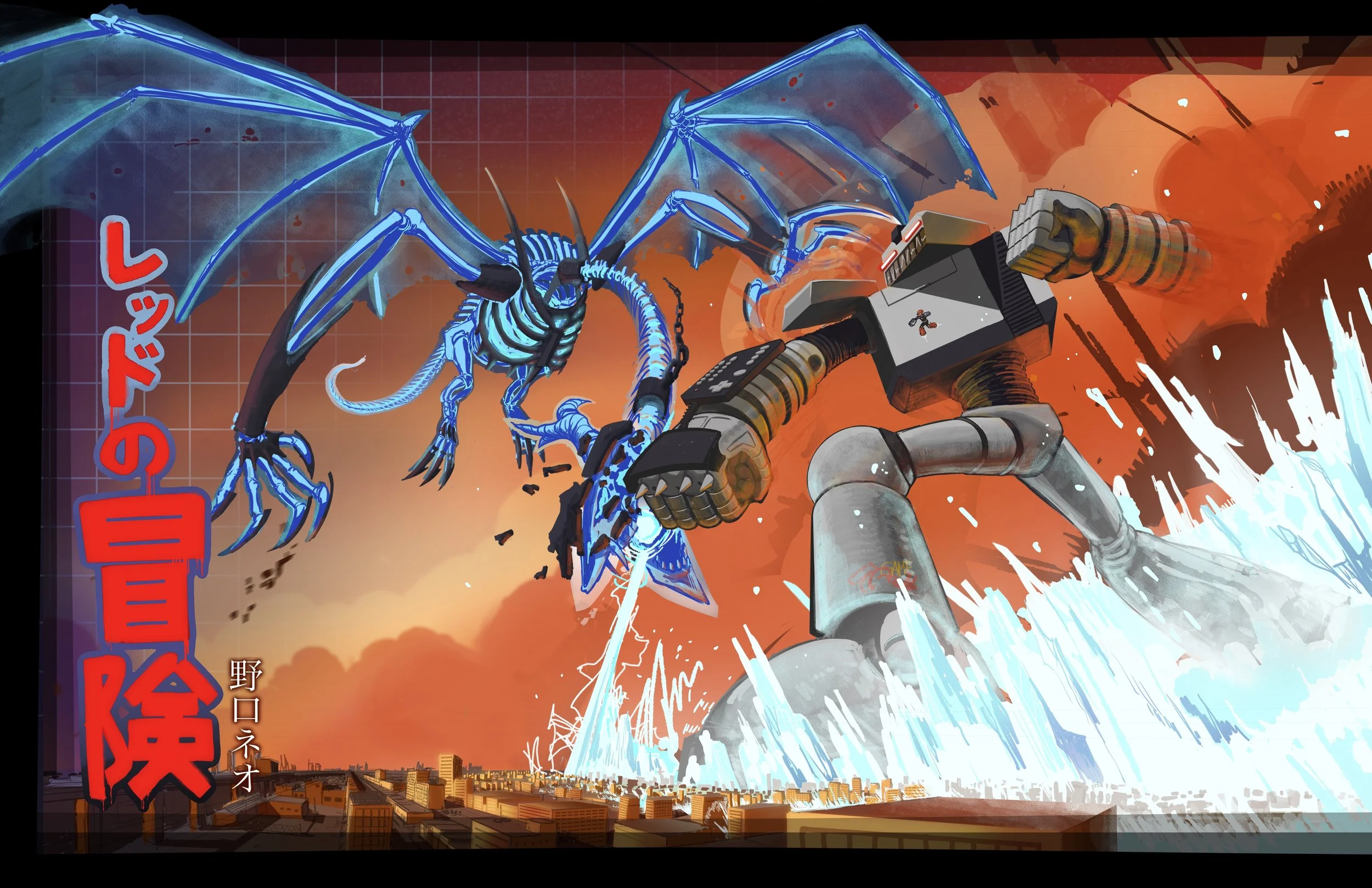 This piece challenged my understanding of scale, background design, and character effects. I designed the mech off of an NES and gave it NES Power Glove gauntlets for smashing.